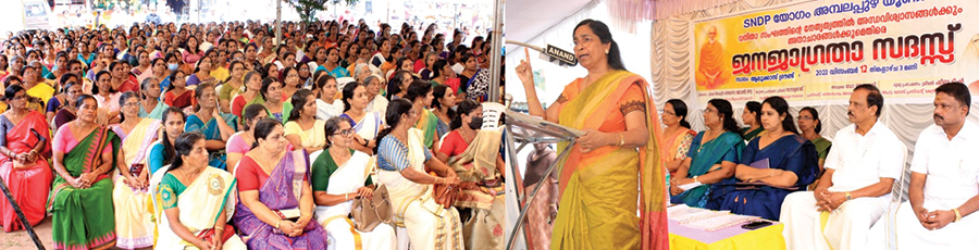 എസ്.എൻ.ഡി.പി.യോഗം അമ്പലപ്പുഴ യൂണിയൻ വനിതാ സംഘത്തിന്റെ നേതൃത്വത്തിൽ ജനജാഗ്രത സദസ് കേന്ദ്ര വനിതാ സംഘം വൈസ് പ്രസിഡന്റ് ഷീബ വേണുഗോപാലൻ ഉത്ഘാടനം ചെയ്യുന്നു