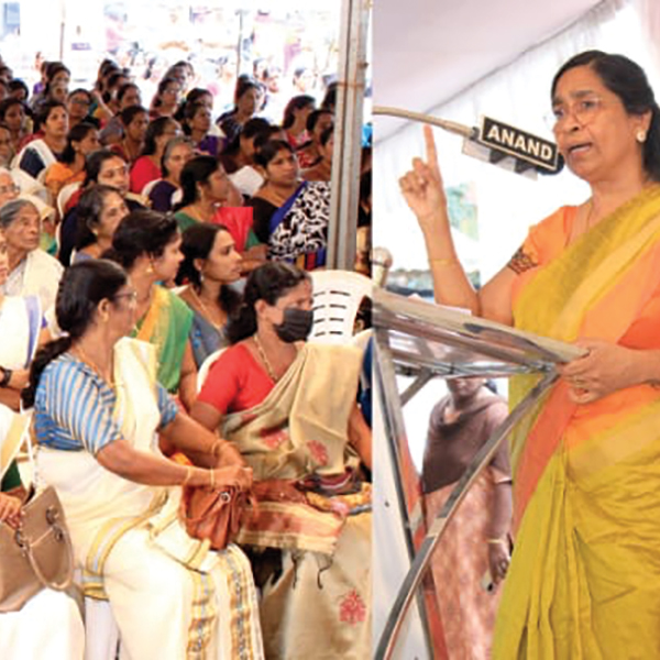അമ്പലപ്പുഴ യൂണിയൻ വനിതാ സംഘത്തിന്റെ ജനജാഗ്രത സദസിൽ നഗരസഭ ചെയർപേഴ്‌സൺ സൗമ്യാരാജ് ജാഗ്രത പ്രതിജ്ഞാ വാചകം ചൊല്ലിക്കൊടുക്കുന്നു