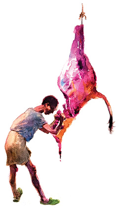 പേറോടെ വീണുകാലൊടിഞ്ഞ് എണീക്കാന്‍ വയ്യാതെ കിടന്ന, എല്ലുംതോലുമായ ഒരു പയ്യിനെ വിലയൊതുക്കി വാങ്ങാന്‍ വാപ്പ പോയപ്പോള്‍ താനും ഒപ്പമുണ്ടായിരുന്നു. നടത്തിക്കൊണ്ടുവരാന്‍ കഴിയാത്തതിനാല്‍ പയ്യിനെ അവിടെവെച്ചു തന്നെ കശാപ്പ് ചെയ്ത് കടയിലെത്തിക്കാന്‍ തീരുമാനിച്ചു.