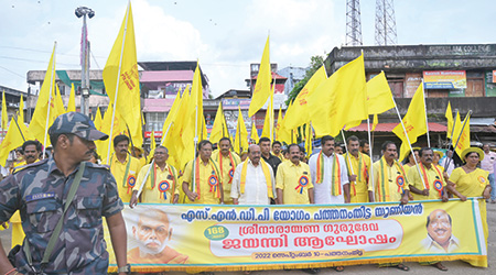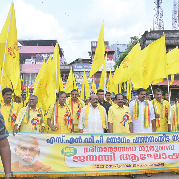 പത്തനംതിട്ട: ജനാധിപത്യം മതാധിപത്യത്തിന് കീഴടങ്ങിയെന്ന് എസ്.എന്.ഡി.പിയോഗം ജനറല് സെക്രട്ടറി വെള്ളാപ്പള്ളി നടേശന് പറഞ്ഞു. പത്തനംതിട്ട യൂണിയന്റെ ചതയദിനഘോഷയാത്രയും സമ്മേളനവും ഉദ്ഘാടനം ചെയ്യുകയായിരുന്നു അദ്ദേഹം. സംഘടിച്ച് ശക്തരാകണമെന്ന് ഗുരുദേവന് നമ്മോടു പറഞ്ഞിട്ട് തൊണ്ണൂറ്റിഒന്പത് വര്ഷമായി. ഈഴവര് സംഘടിക്കാത്തതിനാല് വിദ്യാഭ്യാസ, സാമ്പത്തിക, സാമൂഹിക നീതി ലഭിച്ചിട്ടില്ല, പതിനേഴ് ശതമാനമുള്ള സമുദായത്തിന് ഒരു ജില്ല അനുവദിച്ച നാടാണിത്. ഇരുപത്തെട്ട് ശതമാനമുള്ള ഈഴവര്ക്ക് കിട്ടിയത് ഒരു കോളേജ്. ഉമ്മന്ചാണ്ടി സര്ക്കാര് കുറേ സ്വാശ്രയ കോളേജ് അനുവദിച്ചെങ്കിലും നല്ല കോഴ്സുകളൊന്നും തന്നില്ല. ഈഴവര്ക്ക് തന്നതിനേക്കാള് ഇരട്ടിയിലേറെ കോഴ്സുകള് മറ്റു സമുദായങ്ങള്ക്ക് കൊടുത്തു. തൊഴിലുറപ്പ് പണി മാത്രമാണ് ഈഴവര്ക്ക് ലഭിച്ചത്.