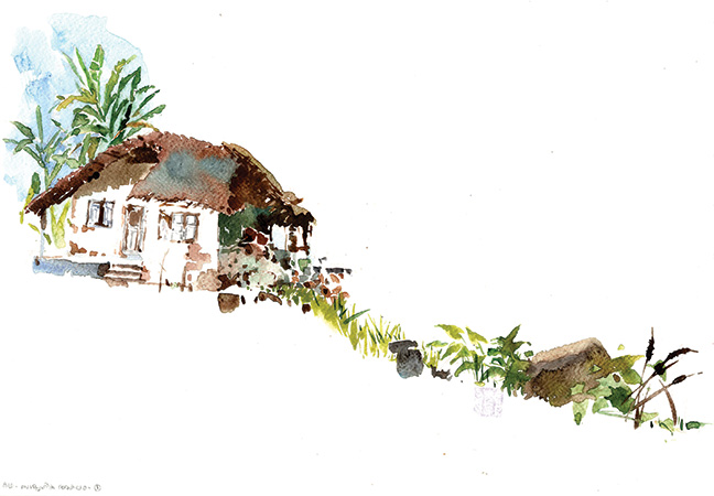 നടുവിലെ വാതില് തുറന്നു കിടക്കുന്നുണ്ട്. മൂപ്പര് നല്ല ഉറക്കത്തിലാണെന്ന് തോന്ന്ണ്. പാവം, അവിടെ കിടക്കട്ടെ. നല്ല ക്ഷീണം ഉണ്ടാകും. റേഷനരിയിട്ട് കുറച്ചു കഞ്ഞിയല്ലേ വെക്കണ്ടൂ.. വിഭവങ്ങളൊന്നും ഒരുക്കണ്ടല്ലൊ. മിക്കപ്പോഴും ഉപ്പും മുളകും ചേര്ത്തരച്ച് കടുക് പൊട്ടിച്ചതാ. കൂടിവന്നാ, പറമ്പീന്ന് പറിച്ച എന്തെങ്കിലും കൊണ്ടൊരു തോരന്. അതിനപ്പുറമൊന്നും അവര് പോയതിനുശേഷം ഉണ്ടാവാറില്ല. അതുതന്നെ വെച്ചുവിളമ്പുന്നത് അവളെ കൊണ്ടായിട്ടല്ല. വേറെ ആരാണുള്ളത്..