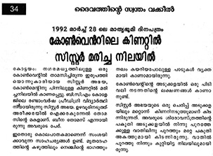 സിസ്റ്റര് അഭയയുടെ മൃതദേഹം 1992 മാര്ച്ച് 31ന് അരീക്കര സെന്റ്റോക്കീസ് പള്ളിയില് സംസ്കരിച്ചതോടെ അദൃശ്യ ശക്തികള് ആശ്വസിച്ചു. സിസ്റ്ററുടെ ജഡം ആറടി മണ്ണില് മറവ് ചെയ്തു. സംസ്കാര ചടങ്ങില് ക്നാനായ സഭയുടെ ആര്ച്ച്ബിഷപ്പ് മാര് കുര്യാക്കോസ് കുന്നശ്ശേരിയും പങ്കെടുത്തു. ആത്മഹത്യ ചെയ്തു എന്ന് സഭയും പോലീസും പ്രചരിപ്പിച്ചിരുന്ന സിസ്റ്റര് അഭയയുടെ സംസ്കാര ചടങ്ങില് ആര്ച്ച് ബിഷപ്പ് മാര് കുന്നശ്ശേരി പങ്കെടുത്തത് വിശ്വാസികളെ അത്ഭുതപ്പെടുത്തി. ആത്മഹത്യ ചെയ്തവര്ക്ക് തെമ്മാടി കുഴി വിധിച്ച സഭ പിന്നീട് നയം മാറ്റിയെങ്കിലും ആത്മഹത്യ ചെയ്യുന്ന ഒരു കന്യാസ്ത്രീയുടെ സംസ്കാര ചടങ്ങില് സഭാ മേലദ്ധ്യക്ഷന്മാര് പങ്കെടുക്കുക പതിവില്ലായിരുന്നു. കേരളത്തില് ആ കാലഘട്ടത്തില് 21കന്യാസ്ത്രീകള് ആത്മഹത്യ ചെയ്തിട്ടുണ്ട്. ഇവരുടെ സംസ്കാര ചടങ്ങുകളിലൊന്നും ബിഷപ്പുമാര് പങ്കെടുത്തിട്ടില്ല. എന്തുകൊണ്ട് ബിഷപ്പ് കുന്നശ്ശേരി നിലപാട് മാറ്റി. അഭയ കേസില് അന്നും ഇന്നുംഉത്തരം കിട്ടാത്ത മറ്റൊരു ചോദ്യമാണിത്.