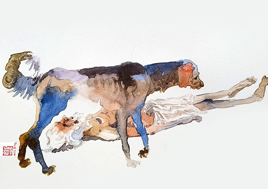 കടത്തിണ്ണയില് ചെന്നിരുന്ന് പൊതിയഴിച്ച് കഴിക്കാന് മുതിര്ന്നു.പക്ഷേ കണ്ണീരിറ്റ് ഭക്ഷണത്തില് വീണു.കണ്ണുകള് ഇറുകെയടച്ച് ഭിത്തിയോട് ചേര്ന്നിരുന്നു. പൊടുന്നനെ അയാള് ചുമച്ചു.ചുമച്ച് ചുമച്ച് വായില് നിന്ന് നൂലുപോലെ കഫമിറ്റ് ഭക്ഷണത്തില് വീണു. കണ്ണുകള് ചുവന്ന് കലങ്ങി.തളര്ന്ന് നിലത്ത് വിരിച്ചിരുന്ന ചാക്കില് വീണു.എത്ര നേരം അങ്ങനെ കിടന്നെന്നറിയില്ല. ഭക്ഷണത്തില് ഈച്ചകള് പറന്നിരുന്നു.മണം പിടിച്ചെത്തിയ നായകള് പൊതിയ്ക്കുമേല് നോട്ടമിട്ടു. മകന്റെ വിവാഹ ഭക്ഷണം ഒരു പിടി കഴിക്കാനുള്ള മോഹത്തില് നായ്ക്കളെ കല്ലെടുത്തെറിഞ്ഞ് തുരത്താനുള്ള ശ്രമം പരാജയപ്പെട്ടു. കണ്ണീര് വലയത്തിലൂടെ പട്ടികളുടെ കടിപിടി കണ്ട് കിടന്നു.