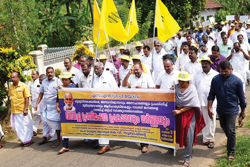 മുവാറ്റുപുഴ: കേരളത്തിന്റെ നവോത്ഥാന മൂല്യങ്ങളേയും നേതാക്കളേയും നിരന്തരം ആക്ഷേപിച്ചു കൊണ്ട് പ്രാകൃതാചാരങ്ങളെ സമൂഹത്തിൽ അടിച്ചേൽപ്പിക്കുവാനുള്ള യുട്യൂബ് തന്ത്രിക്കും തട്ടിപ്പു സംഘങ്ങൾക്കുമെതിരായി എസ് എൻ ഡി പി യോഗത്തിന്റെ തൊടുപുഴ, മുവാറ്റുപുഴ, കോതമംഗലം, കൂത്താട്ടുകുളം യൂണിയനുകളുടെ നേതൃത്വത്തിൽ നടത്തിയ പ്രതിഷേധ മാർച്ചിൽ ആയിരക്കണക്കിന് ശ്രീനാരായണീയർ പങ്കെടുത്തു.