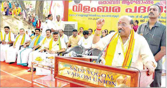 പക്ഷേ ചരിത്രത്തെ വളച്ചൊടിക്കാനും വികലമാക്കാനുമുള്ള ശ്രമങ്ങള് നടക്കുന്നുണ്ട്. വൈക്കം സത്യഗ്രഹം നടന്ന് നൂറ്റാണ്ട് പിന്നിടുമ്പോഴും ജാതിവിവേചനം ചരിത്രത്താളുകളില് പോലുമുണ്ട് എന്നതാണ് സത്യം. ഈഴവനും ദളിതനും ഇന്നും പടിയ്ക്ക് പുറത്താണ് സ്ഥാനം. പിന്നാക്കക്കാരന് ക്ഷേത്രത്തില് പൂജ ചെയ്യാന് അവകാശം നല്കി സര്ക്കാര് ഉത്തരവിറക്കി. പക്ഷേ ആ ഉത്തരവ് നടപ്പായോ, പ്രധാന ക്ഷേത്രങ്ങളിലൊന്നും അവര്ണ ശാന്തിയെ ഇപ്പോഴും ശ്രീകോവിലില് കയറ്റില്ല. ശാന്തിക്കാരന്റെ ശമ്പളം കിട്ടും. പക്ഷേ ഊട്ടുപുരയിലാണ് പണി. അവര്ണന്റെ യഥാര്ത്ഥ ക്ഷേത്രപ്രവേശനം ഇനിയും നടക്കേണ്ടിയിരിക്കുന്നു എന്നതാണ് സാമൂഹ്യ സാഹചര്യങ്ങള് വ്യക്തമാക്കുന്നതെന്നും അദ്ദേഹം പറഞ്ഞു.