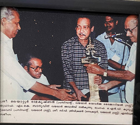 പ്രൊഫ.എം.കെ.സാനുവിന് വയലാർ അവാർഡ് ലഭിക്കാനുള്ള യോഗ്യതയില്ലെന്ന് ആരും പറയില്ല. പക്ഷേ, എത്ര ചെറിയ അവാർഡായാലും അതിന്റെ സംഘാടകർ പാലിക്കേണ്ട ഒരു മര്യാദയുണ്ട്. അതിന്റെ ഉടമസ്ഥരോ ജൂറി അംഗങ്ങളോ ആയിരിക്കുന്നവർ അത് സ്വീകരിക്കാതിരിക്കുക എന്നതാണത്.വയലാർ അവാർഡിന്റെ ഉടമസ്ഥർക്ക് ഇല്ലാതെ പോയത് അതാണ്. ഉടമസ്ഥരായിരിക്കുമ്പോൾ തന്നെ അവാർഡ് സ്വീകരിക്കാൻ അവർക്ക് യാതൊരുളുപ്പുമുണ്ടായില്ല. ട്രസ്റ്റംഗമായിരുന്നിട്ടും അവാർഡ് സ്വന്തമാക്കാൻ ശ്രമിക്കാത്ത ഒരേയൊരാൾ തോപ്പിൽ ഭാസി മാത്രമാണ്.വയലാർ അവാർഡ് ലഭിക്കാൻ യോഗ്യതയില്ലാത്ത നാടകങ്ങളും ആത്മകഥയുമാണ് അദ്ദേഹം എഴുതിയിട്ടുള്ളതെന്ന് ആരും പറയില്ല. അവിടെയാണ് എഴുത്തുകാരുടെ അന്തസ്സിന്റെയും നിലപാടുകളുടേയും പ്രസക്തി. സ്വന്തമായി അവാർഡ് കരസ്ഥമാക്കിയ എഴുത്തുകാർക്കില്ലാതെ പോയതും അതുതന്നെയാണ്.