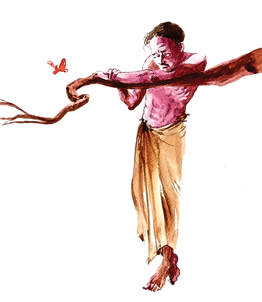നീ ആരാണ്? മേനകയോ? ആണോ? ആണോ? എന്നാല് ഞാന് വിശ്വാമിത്രന് അല്ല. അകലെ ഏതോ കമ്പനിയില് നിന്നും 11.45 സൈറന് നേരിയ ശബ്ദത്തില് കേട്ടു. രാത്രി 12 മണിക്കുള്ള ഷിഫ്റ്റില് കയറാന് തൊഴിലാളികള്ക്കുള്ള മുന്കൂര് അറിയിപ്പാണ്. ചന്ദ്രന് തപ്പിത്തടഞ്ഞ് എഴുന്നേറ്റു. കൂരിരുട്ട്. അന്ന് അമാവാസി ആയിരുന്നു. അവന് വീട്ടിലേക്ക് തിരിച്ചു. വാതില് തുറന്നുതന്നെ കിടപ്പുണ്ട്. കത്തിച്ചുവച്ച ചെറിയ തിരിയിട്ട ഓട്ടു വിളക്ക് അപ്പോഴും അരണ്ട വെളിച്ചത്തില് കെടാവിളക്കായി കത്തിക്കൊണ്ടിരിക്കുന്നു. അമ്മ മാധവി എവിടെയോ ചുരുണ്ടുകൂടി കിടപ്പുണ്ടാവും. വിളിച്ചില്ല. അമ്മ കരുതിവച്ചിരുന്ന ആഹാരം കഴിക്കാന് ചന്ദ്രന് സാധിച്ചില്ല. സമയം 11.58 അടുത്ത പ്രഭാതത്തിന് വേണ്ടി സൂര്യന് കിഴക്ക് എവിടെയോ ഉദിച്ചുയരാന് തയ്യാറെടുപ്പിലാണ്. ചന്ദ്രനെ നിദ്ര വന്നു തലോടി. തളര്ന്ന് ഉറങ്ങിപ്പോയി. നേരം വെളുത്തത് അറിഞ്ഞില്ല.