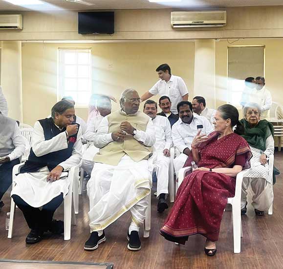 കോണ്ഗ്രസ്സിന് ഒരു സ്ഥിരം പ്രസിഡന്റ് എന്നത് ഒരു സംഘടന സംവിധാനത്തിന്റെ ഊര്ജ്ജസ്വലമായ പ്രവര്ത്തനത്തിന് അനിവാര്യമാണ്. പ്രസിഡന്റില്ലാത്ത അല്ലെങ്കില് നേതാവില്ലാത്ത പാര്ട്ടി എങ്ങിനെയാണ് മുന്നോട്ടു പോവുക? ഈ ചോദ്യത്തിന്റെ ഉത്തരത്തിനുവേണ്ടി വലിയ അന്വേഷണം ആരംഭിച്ചപ്പോള് ഗാന്ധി കുടുംബം ആദ്യം അന്വേഷിച്ചത് രാജസ്ഥാന് മുഖ്യമന്ത്രി അശോക് ഗെലോട്ടിനെയായിരുന്നു. അദ്ദേഹം വിസമ്മതിച്ചു. അപ്പോള് കമല്നാഥിനെ കൊണ്ടുവരാന് ശ്രമിച്ചു. അദ്ദേഹവും ഒഴിഞ്ഞു മാറി. അപ്പോഴാണ് മല്ലികാര്ജ്ജുന ഖാര്ഗെ സോണിയ ഗാന്ധിയുടെ സ്ഥാനാര്ത്ഥിയായി വരുന്നത്. ഗാന്ധികുടുംബം പിന്തുണക്കുന്ന സ്ഥാനാര്ത്ഥി മാത്രമേ വിജയിക്കുകയുള്ളൂ എന്ന കാര്യം എല്ലാവര്ക്കും അറിയാവുന്ന ഒന്നായിരുന്നു. എങ്കിലും ശശിതരൂര് മത്സരിക്കാന് തയ്യാറാവുകയായിരുന്നു. ഗാന്ധി കുടുംബത്തില് നിന്ന് ഒരാളില്ലെങ്കില് രാഹുല്ഗാന്ധി, പ്രിയങ്ക ഗാന്ധി, സോണിയ ഗാന്ധി – ഇവരില് ഒരാളല്ല അദ്ധ്യക്ഷ സ്ഥാനത്തിനുവേണ്ടി സ്ഥാനാര്ത്ഥിയാകുന്നതെങ്കില് താന് മത്സരിക്കും എന്ന് പ്രഖ്യാപിച്ചുകൊണ്ടാണ് അദ്ദേഹം മത്സരരംഗത്തു വന്നത്. ആ മത്സരം ശ്രദ്ധേയമായി.