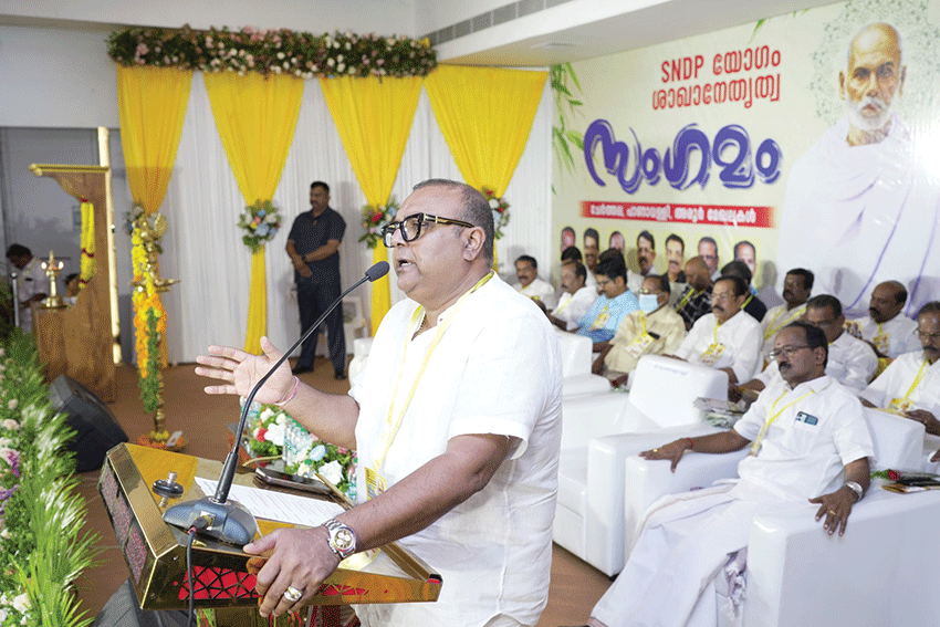 ചേര്‍ത്തല: യോഗത്തെ തകര്‍ക്കാനുള്ള ഗൂഢനീക്കങ്ങളുടെ ഭാഗമാണ് തുടര്‍ച്ചയായ കേസും ആരോപണങ്ങളുമെന്നും ഇതിനൊന്നും മുന്നില്‍ തലകുനിക്കുകയില്ലെന്നും യോഗം വൈസ് പ്രസിഡന്റ് തുഷാര്‍ വെള്ളാപ്പള്ളി പറഞ്ഞു. എസ്.എന്‍.ഡി.പി യോഗം ചേര്‍ത്തല യൂണിയനിലെ ചേര്‍ത്തല, പാണാവള്ളി, അരൂര്‍ മേഖലകളുടെ നേതൃത്വത്തില്‍ നടന്ന നേതൃത്വ സംഗമത്തില്‍ സംഘടനാ വിശദീകരണം നടത്തുകയായിരുന്നു തുഷാര്‍. യോഗത്തിനെതിരെ തെറ്റായ പ്രചാരണങ്ങളാണ് വ്യാപകമായി നടക്കുന്നത്. ഇതിനെ ശക്തമായി പ്രതിരോധിക്കാനുള്ള ശക് തിയോഗത്തിനുണ്ട്. കഴിഞ്ഞ 30 വര്‍ഷക്കാലം യോഗത്തിന്റെ സുവര്‍ണ കാലഘട്ടമാണ്. വിദ്യാഭ്യാസ രംഗത്ത് അഭൂതപൂര്‍വമായ വളര്‍ച്ചയാണ് കൈവരിച്ചത്. ത്രീടയര്‍ സംവിധാനത്തിനുള്ള യോഗത്തിന്റെ സംഘടനാ സംവിധാനം ഇന്ന് അഞ്ച് ടയറിലെത്തി. ഇതിനും പുറമേ നിരവധി പോഷക സംഘടനകളും രൂപീകരിച്ച് ഇന്ന് യോഗം ഇന്ത്യയിലെ തന്നെ മികച്ച സംഘടനകളിലൊന്നായി മാറിയെന്നും തുഷാര്‍ പറഞ്ഞു.