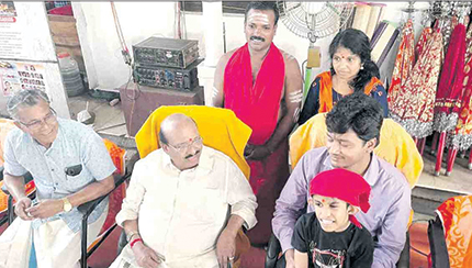ശ്രീഹരി ജില്ലാ കളക്ടര്‍ വി.ആര്‍. കൃഷ്ണതേജയുടെ മടിയിലിരിക്കുന്നു. ദേവസ്വം പ്രസിഡന്റ് വെള്ളാപ്പള്ളി നടേശന്‍, സെക്രട്ടറി പി.കെ. ധനേശന്‍, ശ്രീഹരിയുടെ മാതാവ് സുമ, വെളിച്ചപ്പാട് ജിജു പൊന്നപ്പന്‍ എന്നിവര്‍ സമീപം.