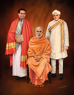 തൃശൂര്: ശ്രീനാരായണ ഗുരുവിനൊപ്പം ഡോ. പല്പുവും മഹാകവി കുമാരനാശാനുമുള്ള ഭാവനാച്ചിത്രമൊരുക്കി ആര്ട്ടിസ്റ്റ് ഗിരീഷ് മേത്തല. യോഗം കൗണ്സിലര് ബേബിറാമിന്റേതാണ് ആശയം. 1903ല് എസ്.എന്.ഡി.പി യോഗം രൂപീകരിക്കുമ്പോള് ശ്രീനാരായണഗുരു പ്രസിഡന്റും ഡോ. പല്പ്പു വൈസ്പ്രസിഡന്റും പ്രഥമ ജനറല് സെക്രട്ടറി മഹാകവി കുമാരനാശാനുമായിരുന്നു.