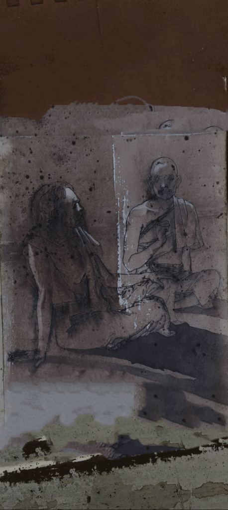 സന്തോഷമായി. കൂട്ടുകാരുടെ സ്നേഹവും പരസ്പരമുള്ള ആദരവും കണ്ടപ്പോള് എല്ലാവര്ക്കും നല്ല മതിപ്പുതോന്നി. ഗൃഹസ്ഥാശ്രമിയായിക്കഴിയുന്ന കൃഷ്ണന് വൈദ്യര് വിശേഷങ്ങളെല്ലാം ചോദിച്ചു. സതീര്ത്ഥ്യന് പറയുന്ന മറുപടിയില് വിരക്തിയുടെ സ്വരം. എല്ലാറ്റിനും നിസ്സംഗഭാവത്തിലുള്ള ഉത്തരം.