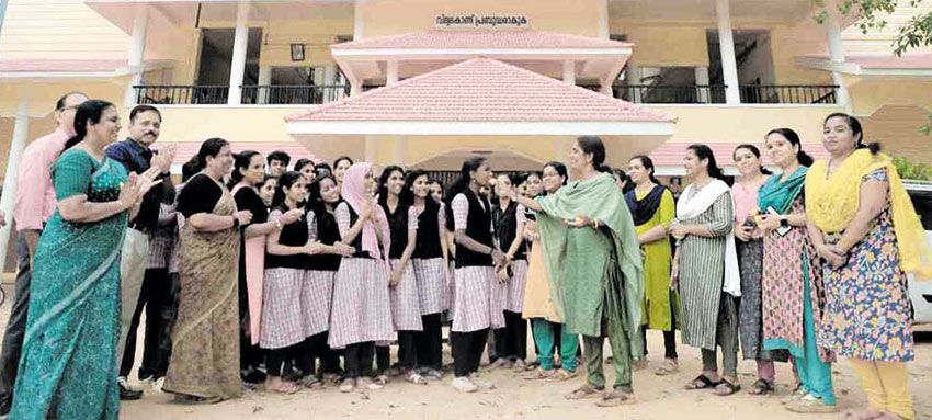 എസ്.എസ്.എല്‍.സി. പരീക്ഷയില്‍ സമ്പൂര്‍ണ്ണവിജയം നേടിയ പൂത്തോട്ട ക്ഷേത്രപ്രവേശന മെമ്മോറിയല്‍ (കെ.പി.എം.) ഹൈസ്‌കൂളിലെ അദ്ധ്യാപകരും വിദ്യാര്‍ത്ഥികളും വിജയാഘോഷത്തില്‍.