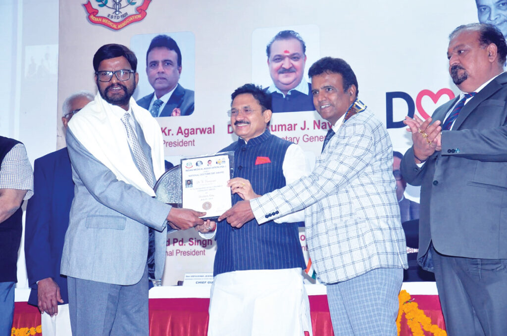 ഐ.എം.എ. ദേശീയ സമിതി ഏര്പ്പെടുത്തിയ ഡോ. ബി.സി. റോയ് അവാര്ഡ് ഡോ. കെ. വേണുഗോപാൽ ഏറ്റുവാങ്ങുന്നു.