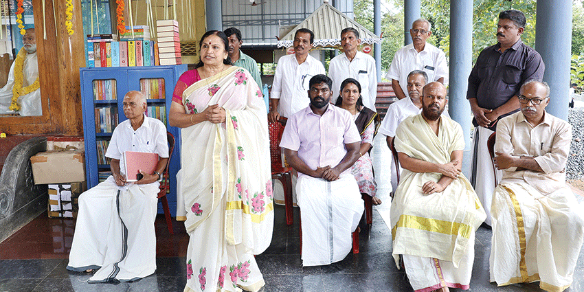 ഇടവൂർ ശങ്കരനാരായണ ക്ഷേത്രത്തിൽ വായനശാല ജില്ലാ പഞ്ചായത്ത് അംഗം ശാരദാ മോഹൻ ഉദ്ഘാടനം ചെയ്യുന്നു
