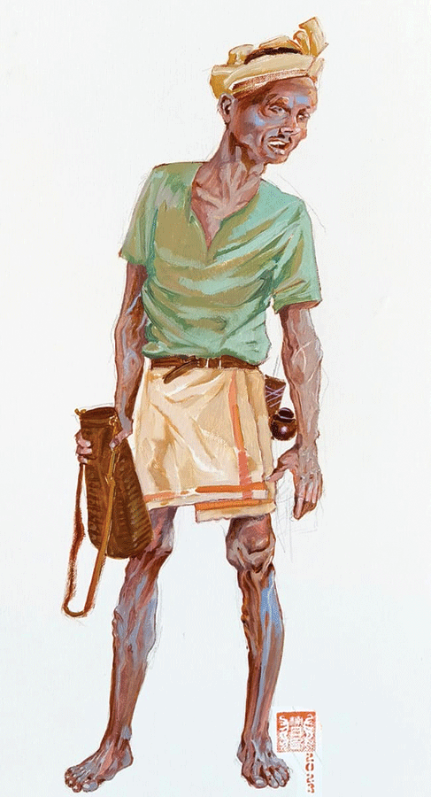 ചെത്തുകാരന് അരവിന്ദന് ഉമ്മറത്തുവന്നുനില്പ്പുണ്ടെന്ന് ഭാര്യ പറഞ്ഞതുകേട്ട് ചെല്ലുമ്പോള്, പുറകില് തൂക്കിയിരുന്നനിറഞ്ഞ കള്ളുംകുടുക്ക ഊരി ഇറയത്തുവച്ചുകൊണ്ട് അയാള് വരാന്തയിലേക്ക് കയറി.