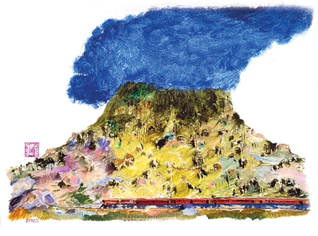 രാവിലെ ട്രെയിനിറങ്ങി പാളം മുറിച്ചു കടക്കുമ്പോള്തന്നെ കണ്ടു, അധികം ദൂരെയല്ലാതെ അതിമനോഹരമായ പച്ചപ്പുനിറഞ്ഞ മലനിരകള്. എന്നാല് മുകളിലോട്ടുപോകുംതോറും പച്ചപ്പുമാറി മഞ്ഞിന്റെ വെണ്മ നിറഞ്ഞു മകുടങ്ങളും, സ്വര്ണ്ണ വര്ണ്ണമാര്ന്ന മേലാപ്പു പുറകോട്ടുവലിച്ചെറിഞ്ഞ് ഉണര്ന്നെഴുന്നേല്ക്കുന്ന മാര്ത്താണ്ഡദേവന്.