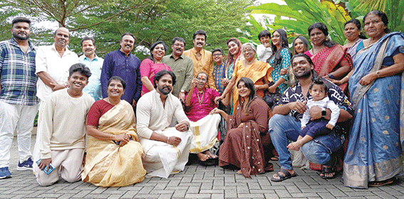 വാതാപി ഗണപതിംഭജേഹം വാരണാസ്യം വരപ്രദം ശ്രീ ‘ എന്ന ഗണപതി സ്തുതി കീർത്തനത്തിന്റെ പശ്ചാത്തലത്തിൽ മക്കളും മറ്റു ബന്ധുക്കളും ചേർന്നു മഞ്ഞയും ചുവപ്പും ഇടകലർന്ന വലിയ പൂമാല കഴുത്തിലണിയിച്ചു