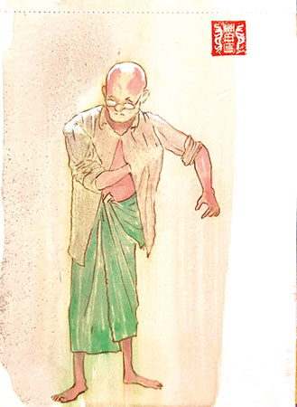 “ അച്ഛൻ..?” മീര പതുക്കെ എഴുന്നേറ്റുകൊണ്ടു ചോദിച്ചു. അകത്തു രോഗിയായിക്കിടക്കുന്നെങ്കിൽ ഒന്നു കണ്ടിട്ടുപോകുന്നതു മീരയ്ക്കു സന്തോഷമാകുമെന്ന് എന്തുകൊണ്ടോ അവൾക്കു തോന്നി.