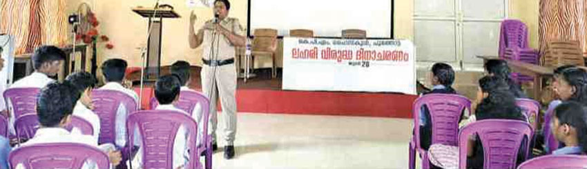 കൊച്ചി. പൂത്തോട്ട ക്ഷേത്രപ്രവേശന മെമ്മോറിയല് ഹൈസ്കൂളില് ലോക ലഹരിവിരുദ്ധ ദിനാചരണം നടത്തി.ആന്റിനര്കോട്ടിക് ക്ലബ്ബിന്റെ ആഭിമുഖ്യത്തില് സ്കൂള് ക്ലബ്ബുകള് സംയുക്തമായാണ് പരിപാടി സംഘടിപ്പിച്ചത്. ഹെഡ് മാസ്റ്റര് അനൂപ്സോമരാജ് ലഹരിവിരുദ്ധദിന സന്ദേശം നല്കി. സി.പി.ഒ. കെ.ആര്. രമ്യ ബോധവത്കരണ ക്ലാസെടുത്തു. കുട്ടികള് തയ്യാറാക്കിയ ലഹരിവിരുദ്ധ സന്ദേശങ്ങളടങ്ങിയ പോസ്റ്ററുകളുടെ പ്രദര്ശനം ചിത്രരചനാ മത്സരം, നിഴലാട്ടം എന്നിവ സംഘടിപ്പിച്ചു.