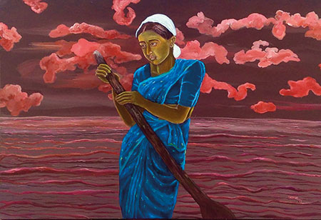 മ്യൂസിയങ്ങൾ ഇതുവരെ ആലോഷിച്ചിട്ടില്ലാത്ത ക്യാൻവാസിലേക്ക് സ്ത്രീയെയും അവളുടെ തൊഴിലുകളെയുമാണ് ചില ഘട്ടങ്ങളിൽ മറിയം ചിത്ര കോളങ്ങളിൽ സ്ഥലപ്പെടുത്തുന്നത്. പുരുഷാധിപരുടെ കണക്കുക്കൂട്ടലുകളെ തെറ്റിക്കുന്നതും , ചരിത്രം കുഴിച്ചുമൂടാൻ ശ്രമിക്കുന്ന സ്ത്രീയുടെ മാൻഹോൾ ജീവിതത്തിന്റെ അടരുകൾ ഒന്നൊന്നായി മുറിച്ചെടുക്കുകയും ചെയ്യുന്ന വിദ്യയാണ് മറിയം പരിചരിക്കുന്നത്. ഈ ചിത്രകാരിയുടെ കട്ടൗട്ട് വർക്കുകളിൽ സ്വച്ഛതയിൽ നിന്നും നിഷ്കാസിതരാകുന്ന സ്ത്രീകളാണധികവുമുള്ളത്. സ്ത്രീക്ക് ഒരു പുതുജീവിതം വെട്ടിയെടുത്തു നൽകുന്ന അത്തരം ചില ചിത്രങ്ങളെ നിരീക്ഷിച്ചാൽ മുകളിൽ വിവരിച്ച സാരസ്യങ്ങൾ എളുപ്പത്തിൽ ബോദ്ധ്യമാകും. ‘പങ്കായം കയ്യിലേന്തിയ സ്ത്രീ ‘ – ഇന്നും സ്ത്രീയുടെ ജീവിതം സഹനങ്ങളിലൂടെയുള്ള നെടുങ്കൻ തുഴച്ചിലാണെന്നും, പ്രതികൂല സാഹചര്യങ്ങളെ തുഴഞ്ഞു തോൽപ്പിക്കുന്നവളാണ് സ്ത്രീയെന്നുമൊക്കെയുള്ള വിശദീകരണങ്ങൾക്ക് പിടിതരുന്നുണ്ട്. സ്ത്രീകൾ കുളിക്കുന്നതും നിലക്കണ്ണാടി നോക്കുന്നതും നൃത്തം ചെയ്യുന്നതും ഒന്നുമല്ല മറിയത്തെ അലട്ടുന്നത്. ഏകാന്തതയുടെ ചിത്രീകരണമുള്ള മറ്റൊരു സ്ത്രീയാഖ്യാനം അതാണ് പറഞ്ഞുതരുന്നത്. ” കൈതൊഴിലിലേർപ്പെടുന്ന ശിരോവസ്ത്രം ധരിച്ച സ്ത്രീയും “, ” തൊഴിലുറപ്പ് പദ്ധതിയെ അനുസ്മരിപ്പിക്കുന്ന പണിയായുധം കയ്യിലേന്തിയ സ്ത്രീയും “, ” അസ്വാതന്ത്ര്യത്തിന്റെ വസ്ത്രമായ പർദ്ദ ധരിച്ച സ്ത്രീയും കുട്ടികളും ” ഒക്കെ നമുക്കു മുമ്പിൽ തുറന്നിടുന്നത് ഒരു വുമൺ ആർട്ടിസ്റ്റ് സ്റ്റുഡിയോയിലെ വിവിധതരം സ്ത്രീഭാഷ്യങ്ങളെയാണ്. ഒരു ഡൊമസ്റ്റിക് സ്പേസിനു (domestic space ) പുറത്തേക്കു പോകുന്ന സ്ത്രീകളെയാണ് നിരന്തര പ്രതിപക്ഷ സ്ത്രീ മോബായി മറിയം വളർത്തിയെടുക്കുന്നത്.
