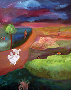 സങ്കീർണ്ണമായ ക്രമഭംഗങ്ങളുടെ ഏകത തീർക്കാൻ ഈ കലാകാരി വിനിയോഗിക്കുന്നത് തന്റെ തന്നെ ആത്മപ്രതിഫലന ശേഷിയെയാണ്. തന്റെ ഉളളിലെ സാധ്യതകളുടെ പര്യവേഷണമായി വേണം അത്തരം ചിത്രങ്ങളെ വായിച്ചെടുക്കാൻ. സാന്ദ്രസങ്കല്പങ്ങളെക്കാൾ മിശ്രനിറ സങ്കേതങ്ങൾ ഉപയോഗിച്ച് ഉപരിതലലാവണ്യസൗന്ദര്യം തീർക്കാനാണ് മറിയം ശ്രമിക്കുന്നത്