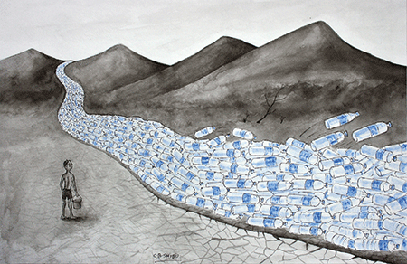 ചെറി സാംബയുടെ ” Mr Poor’s family ” പ്രകൃതിയുടെ തുറസ്സിലിരിക്കുന്ന ഒരു വീടിനെയാണ് ചിത്രീകരിച്ചിരിക്കുന്നത്. മരത്തലപ്പുകൾ മാത്രമല്ല പ്രകൃതിചിത്രണമെന്ന വലിയ ബോധ്യങ്ങളാണ് ഇത്തരം ചിത്രങ്ങൾ പകർന്നു കാട്ടുന്നത്. അക്കാദമിക് ലാന്റ് സ്കേപ്പ് സമ്പ്രദായം അഭ്യസിച്ചിട്ടില്ലാത്ത അത്തരം ഒരു ചിത്രകാരനാണ് സി.ബി. ഷിബു. തീക്ഷ്ണമായ സ്വകാര്യതകളുടെ സ്വച്ഛന്ദ വ്യവഹാരത്തിനായി പരിസ്ഥിതിയുടെ പങ്കാളിത്ത ചമത്ക്കാരത്തെ വിനിയോഗിക്കാനാണ് ഷിബു നിറങ്ങളെ വിനിയോഗിക്കുന്നത്. ഇക്കോ സിസ്റ്റത്തെ അസഹനീയമാംവിധം അടച്ചും നിയന്ത്രിച്ചും നിർത്തുന്ന വ്യവസ്ഥകൾ ഈ കലാകാരനെ ഒട്ടധികം ബാധിച്ചിട്ടുണ്ടായിരിക്കുമെന്നത് കലർപ്പില്ലാത്ത സത്യമാണ്. ചിത്രകലയിലെ ഭാവനാത്മകമായ ജീർണ്ണ പ്രാചീനതകളെ ഊരിക്കളയുന്ന ഒരു ശൈലിയാണ് ഷിബു പിൻതുടരുന്നത്. പ്രകൃതിവസ്തുക്കളെ ഒറ്റയ്ക്കൊറ്റയ്ക്ക് കാഴ്ചാപൂർണ്ണതയ്ക്കെത്തിച്ചു നൽകുന്ന ഒരു രീതി ഈ കലാകാരൻ അവലംബിക്കുന്നുണ്ട്. മഹിമയുടെ മൂല്യമുള്ള രൂപങ്ങളെ വരയ്ക്കാൻ പ്രകൃതിയിലേക്ക് നോക്കണമെന്ന സൗന്ദര്യചിന്തയാണ് ഈ കലാകാരൻ മുന്നോട്ടുവയ്ക്കുന്നത്.