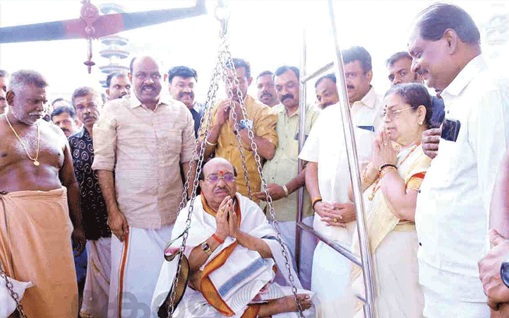 ക്ഷേത്ര നടയില്‍ തുലാഭാരം നടത്തുന്നു