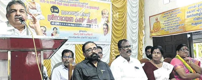 എസ്.എന്‍.ഡി.പി യോഗം മാന്നാര്‍ യൂണിയന്‍ 1926-ാം നമ്പര്‍ ഇരമത്തൂര്‍ ആര്‍. ശങ്കര്‍ മെമ്മോറിയല്‍ ശാഖയുടെ ആഭിമുഖ്യത്തിലുള്ള ഒന്നാമത് ഇരമത്തൂര്‍ കിഴക്ക് ശ്രീനാരായണ കണ്‍വെന്‍ഷന്‍ ഉദ്ഘാടനം ചെയ്ത് മന്ത്രി സജിചെറിയാന്‍ സംസാരിക്കുന്നു.