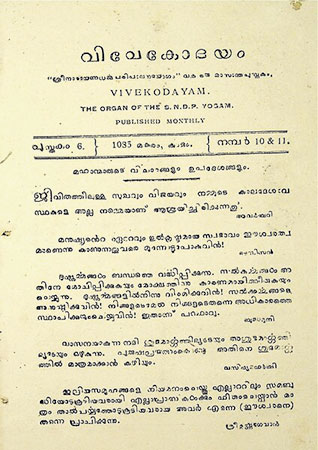 ആശാന്‍ വിവര്‍ത്തനം ചെയ്ത വിവേകോദയത്തില്‍ പ്രസിദ്ധീകരിച്ച വിവേകാനന്ദന്റെ ഒരു കത്തിലെ ഇന്നും പ്രസക്തമായ ഒരു ഭാഗം കാണുക: ”നമ്മുടെ താണജാതിക്കാര്‍ക്കുവേണ്ടി നമ്മള്‍ ചെയ്യപ്പെടേണ്ട പ്രധാനമായൊരു കൃത്യമെന്തെന്നാല്‍ അവരുടെ ഇടയില്‍ വിദ്യാഭ്യാസത്തെ പ്രചാരപ്പെടുത്തി അവരുടെ നഷ്ടമായിപ്പോയ ഐക്യത്തെ വര്‍ദ്ധിപ്പിച്ചു കൊടുക്കണമെന്നുള്ളതാണ്. ഇതാണു നമ്മുടെ രാജാക്കന്മാരുടെയും ജനങ്ങളുടെയും മേലുള്ള മുഖ്യമായ ചുമതല… പര്‍വതം മുഹമ്മദിന്റെ അടുത്തു വരുന്നില്ലെങ്കില്‍ മുഹമ്മദ് പര്‍വ്വതത്തിന്റെ അടുത്തു ചെല്ലണം. സാധുബാലനു വിദ്യ തേടുന്നതിനു പ്രയാസമാണെന്നു വരികില്‍ വിദ്യ അവന്റെ അടുത്തു ചെല്ലണം” നമ്മുടെ ജനാധിപത്യ രാജ്യത്തു ഇന്നും പൂര്‍ണ്ണമായി സഫലമാകാത്ത ഈയൊരു നിര്‍ദ്ദേശത്തെ എസ്.എന്‍.ഡി.പി യോഗം സെക്രട്ടറി എന്ന നിലയിലും പൗരപ്രമുഖന്‍, പ്രജാസഭ മെമ്പര്‍, പത്രാധിപര്‍, കവി തുടങ്ങിയ നിലകളിലും സ്വന്തം കര്‍മ്മഭൂമിയില്‍ നടപ്പിലാക്കാന്‍ ആദ്യന്തം ഉദ്യമിച്ച വ്യക്തിയായിരുന്നു ആശാന്‍.