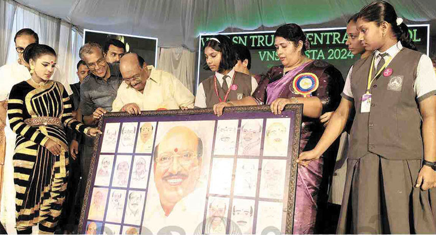 ചേര്ത്തല: കണിച്ചുകുളങ്ങര വി.എന്.എസ്.എസ്.എസ്.എന്.ട്രസ്റ്റ് സെന്ട്രല് സ്കൂളിലെ രജതജൂബിലി ആഘോഷചടങ്ങില് സ്കൂള് മാനേജരും എസ്.എന്.ട്രസ്റ്റ് സെക്രട്ടറിയുമായ വെള്ളാപ്പള്ളി നടേശന് വ്യത്യസ്ത സമ്മാനം നല്കി വിദ്യാര്ത്ഥികള്. സ്കൂള് മാനേജര് സ്ഥാനത്ത് വെള്ളാപ്പള്ളിനടേശൻ 25 വര്ഷം പൂര്ത്തിയാക്കിയതിന്റെ ഓര്മ്മയ്ക്കാണ് ഉപഹാരം. സ്കൂളിലെ 25 വിദ്യാര്ത്ഥികളാണ് വെള്ളാപ്പള്ളിനടേശന്റെ ജീവന് തുടിക്കുന്ന ചിത്രരചന നടത്തിയത്. ചിത്രങ്ങൾ എല്ലാം ഒരു ഫ്രെയിമിലാക്കി പ്രിന്സിപ്പലും രചന നടത്തിയ കുട്ടികളും ചേര്ന്ന് സമ്മാനിച്ചു മികച്ച ചിത്രങ്ങള്ക്ക് സ്കൂള് പിടിഎ എക്സിക്യൂട്ടീവ് സമ്മാനവും പ്രഖ്യാപിച്ചിട്ടുണ്ട്. അഭിന കെ. വേണു ഒന്നാം സ്ഥാനവും , എ. നിവേദിത രണ്ടാംസ്ഥാനവും, ലക്ഷ്മി സുരേഷ് മൂന്നാം സ്ഥാനവും നേടി. അഞ്ചാം ക്ലാസുകാര് മുതലുള്ള വിദ്യാര്ത്ഥികള് ചിത്രരചനയില് പങ്കെടുത്തു.